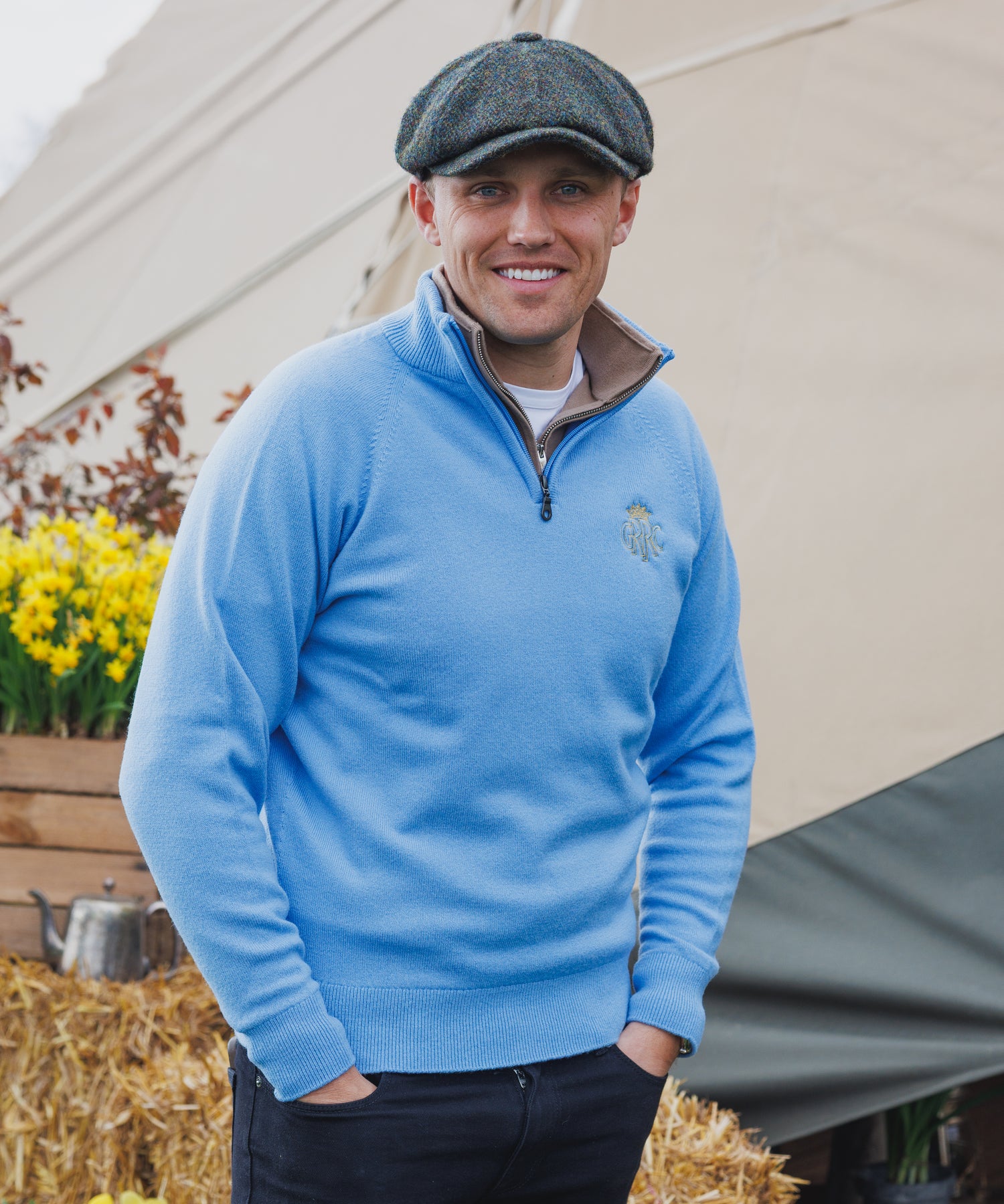 This beautifully crafted 1/4 zip GRRC merino jumper is made in England using the finest soft merino lambswool, enhanced with 4% nylon for added comfort, durability, and stability. Knitted without side seams for a smooth fit, it features a zip neck collar with bound edges and a slim, flattering shape—ideal for wearing over a T-shirt or as a layering piece.