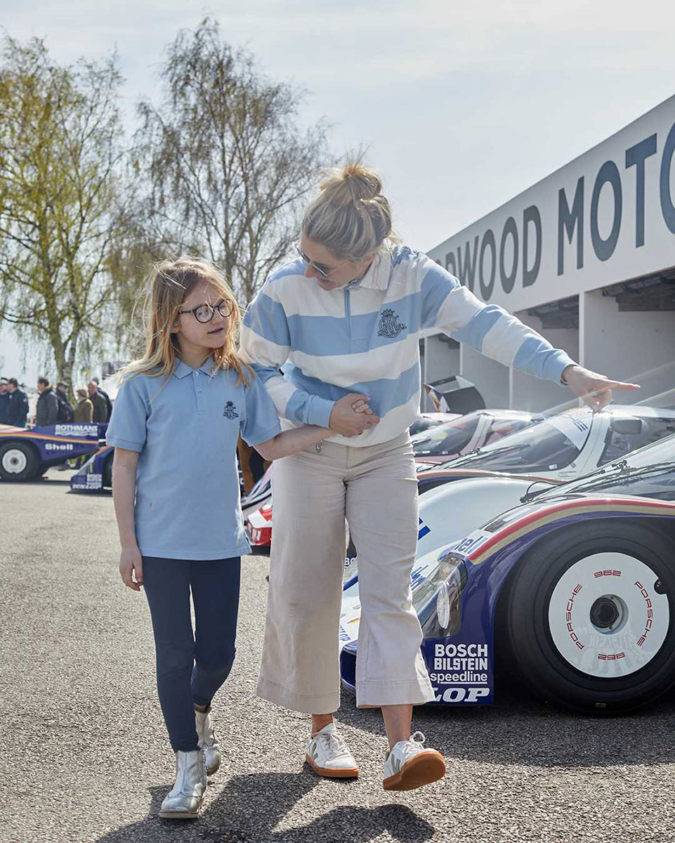 Wear timeless style with our GRRC rugby shirt, crafted to bring a touch of refined heritage to your wardrobe. The classic off white and pale blue stripe pays tribute to the exclusive colours of Goodwood’s celebrated Members' Meeting, ensuring you look effortlessly distinguished every time you visit the circuit.