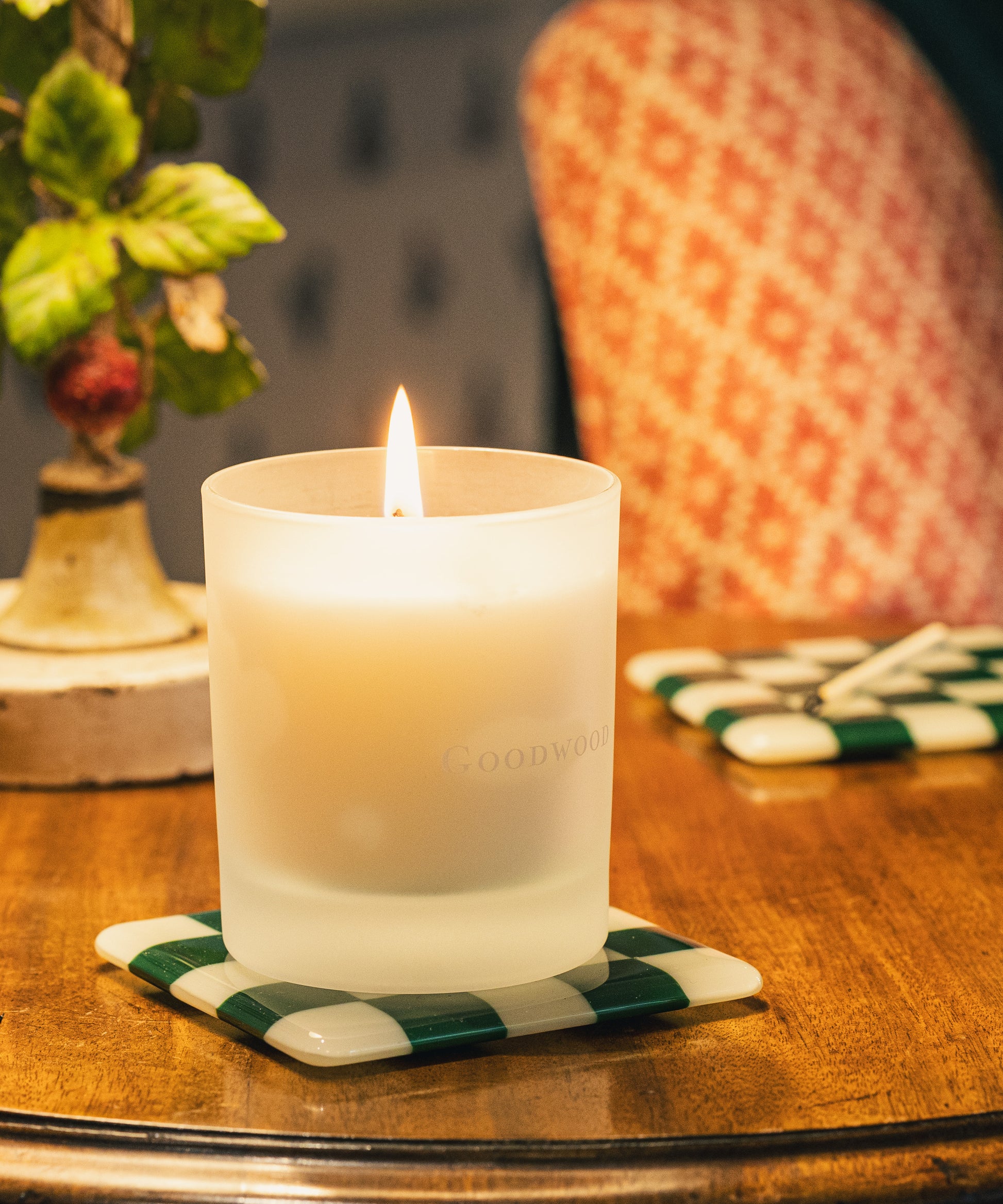 Handmade in the UK, each Goodwood candle is poured in a classic, clear glass tumbler, and presented in an elegant white and green box that takes its design cues from the heraldic patterning of the Richmond family crest.