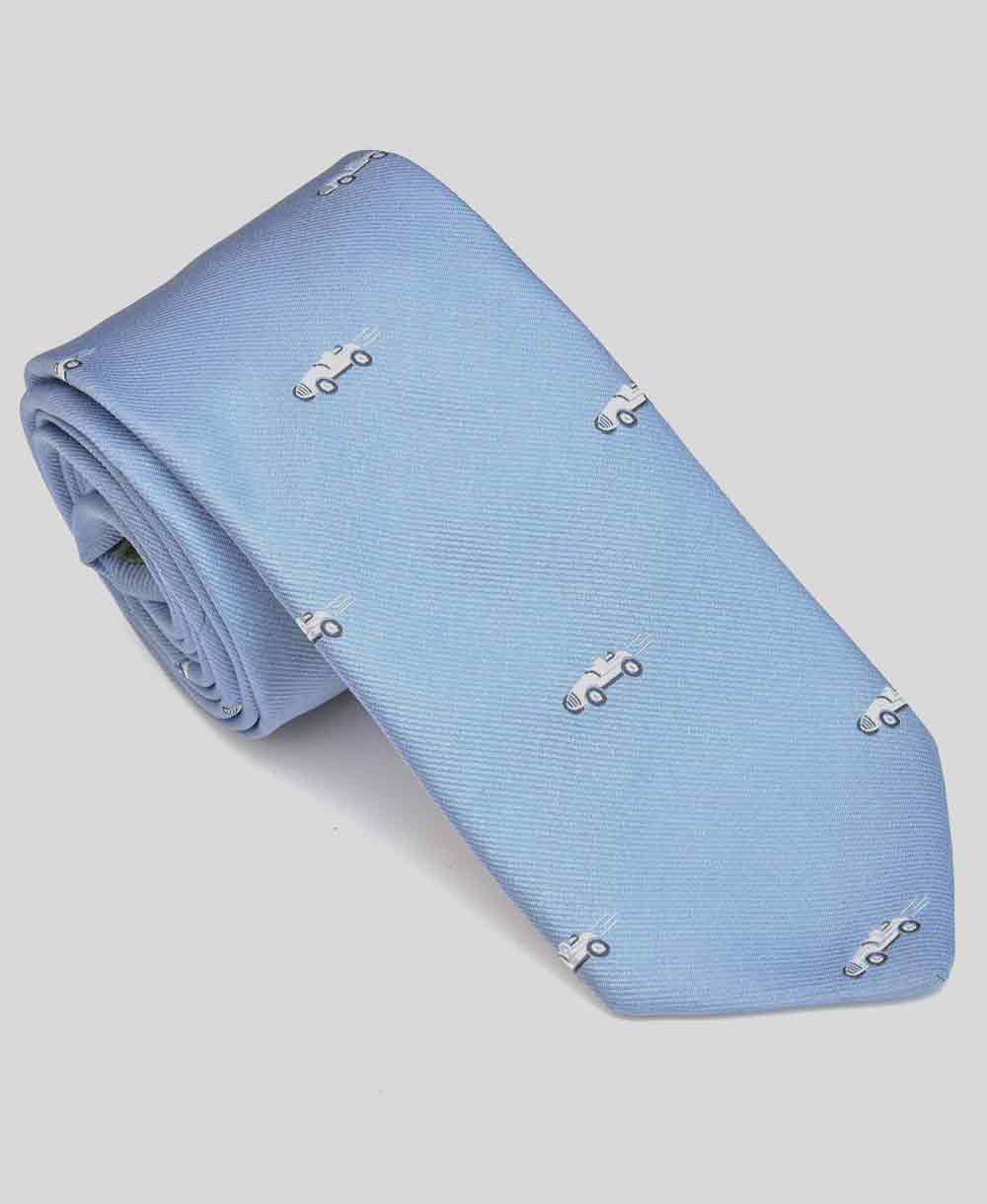 Goodwood Cartoon Car Light Blue & White Silk Tie