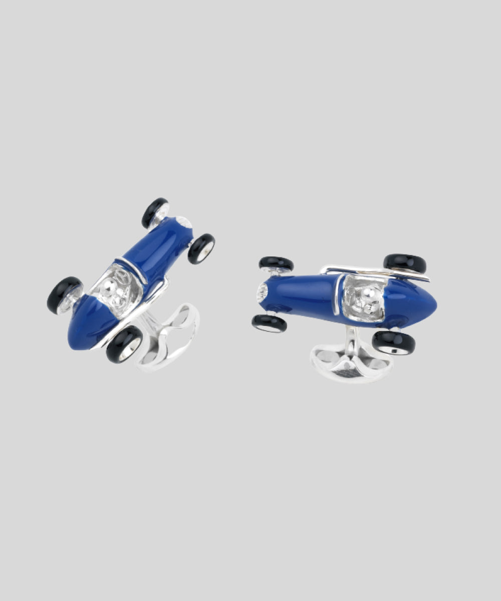 Sterling Silver Racing Car Cufflinks Blue