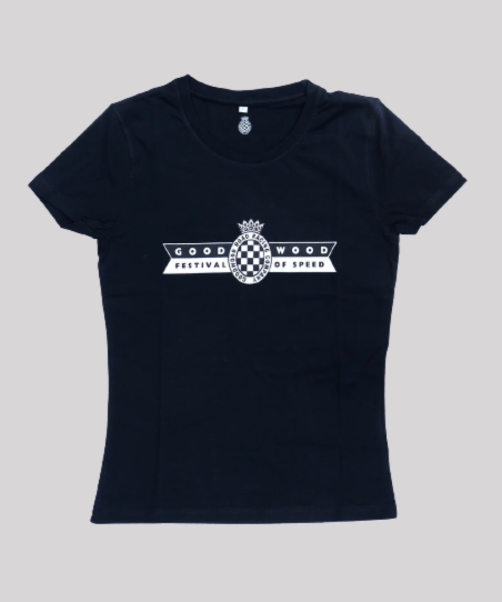 This classic black 100% cotton women's motorsport t-shirt features our iconic Festival of Speed logo. A simple and stylish addition to your wardrobe, it works well worn with a Racing Colours green and yellow baseball cap.