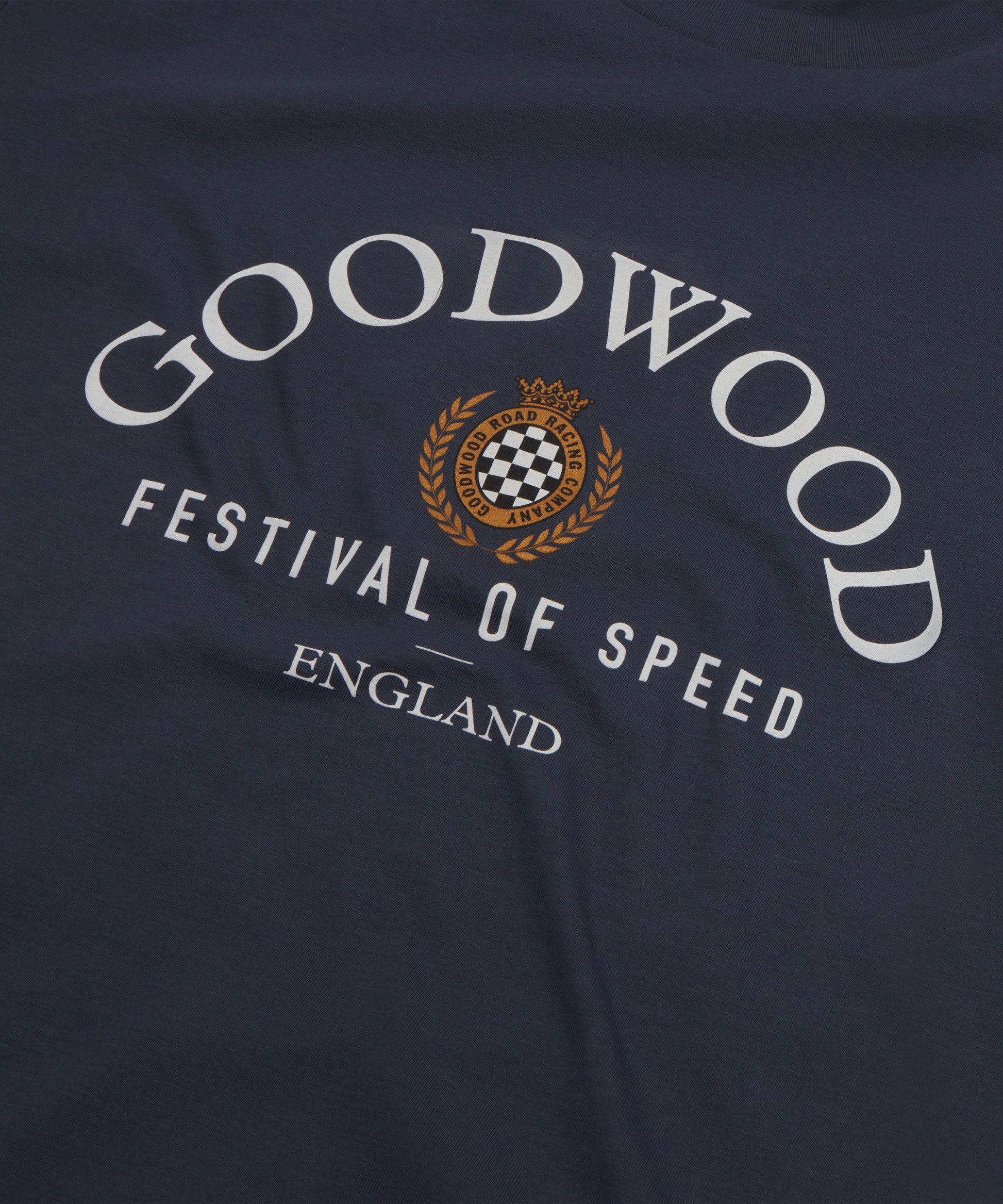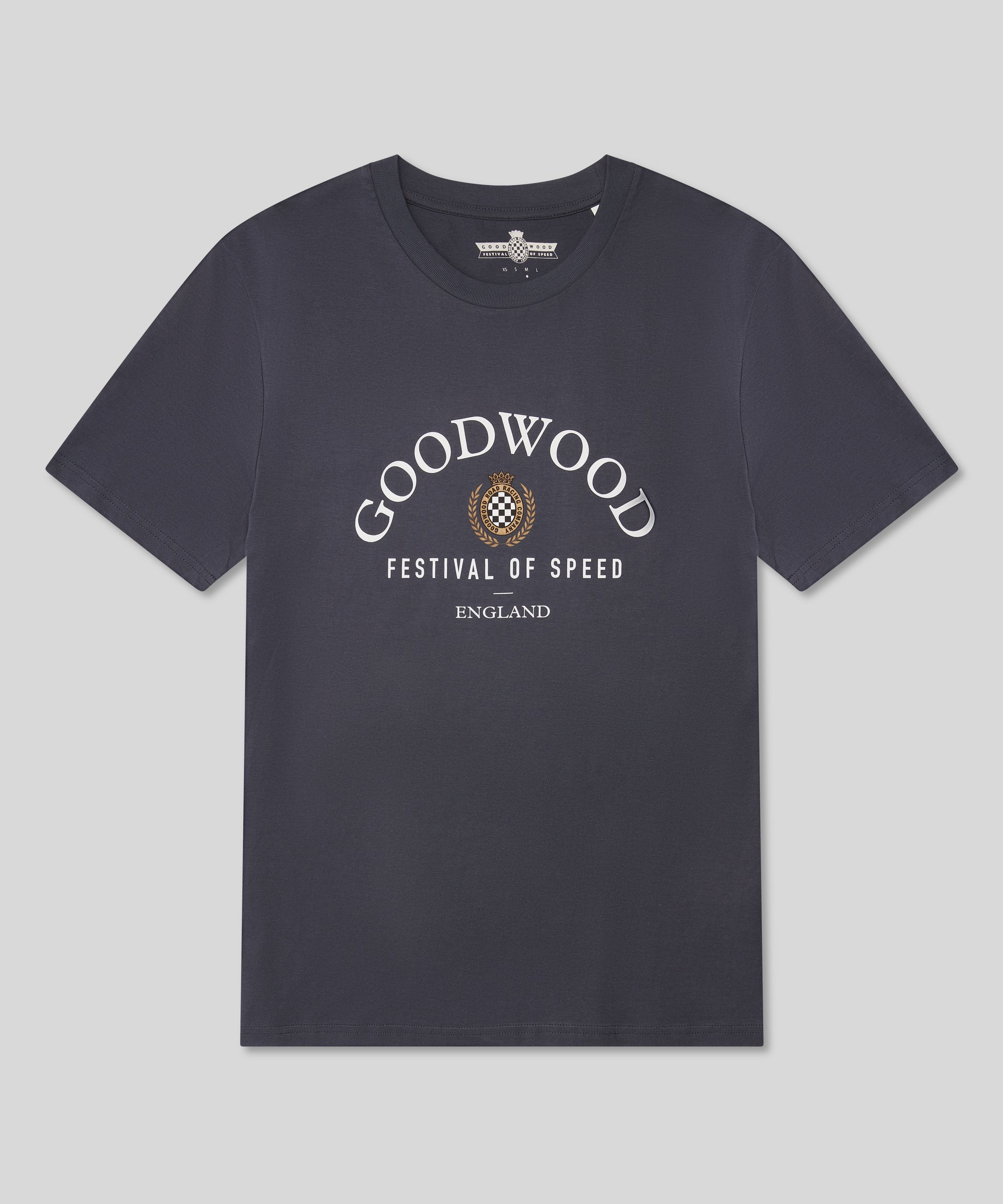 Featuring the prestigious Goodwood Road Racing Company crest framed by golden winners' laurels, along with our classic Goodwood Festival of Speed logo, this sophisticated t-shirt is destined to be the must-have summer warmer this year.