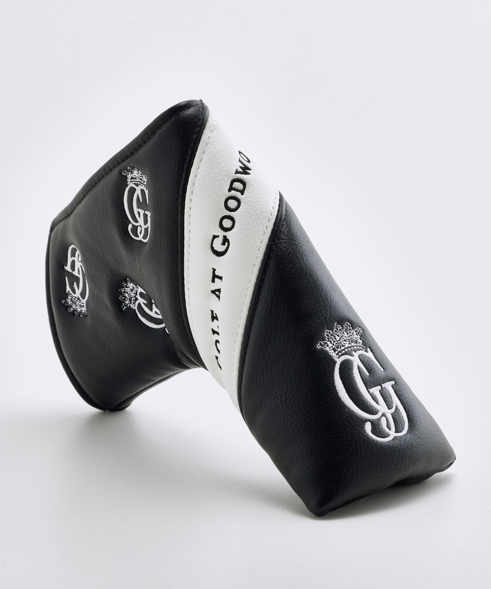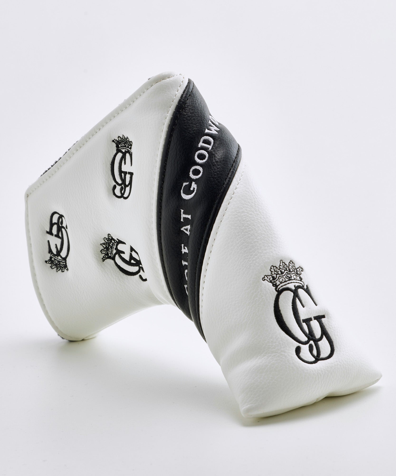 Golf At Goodwood blade putter cover. Bespoke design with stripe accent and mini GG detail, ideal for making your putter stand out. Made from a soft PU leather with full magnetic closure.