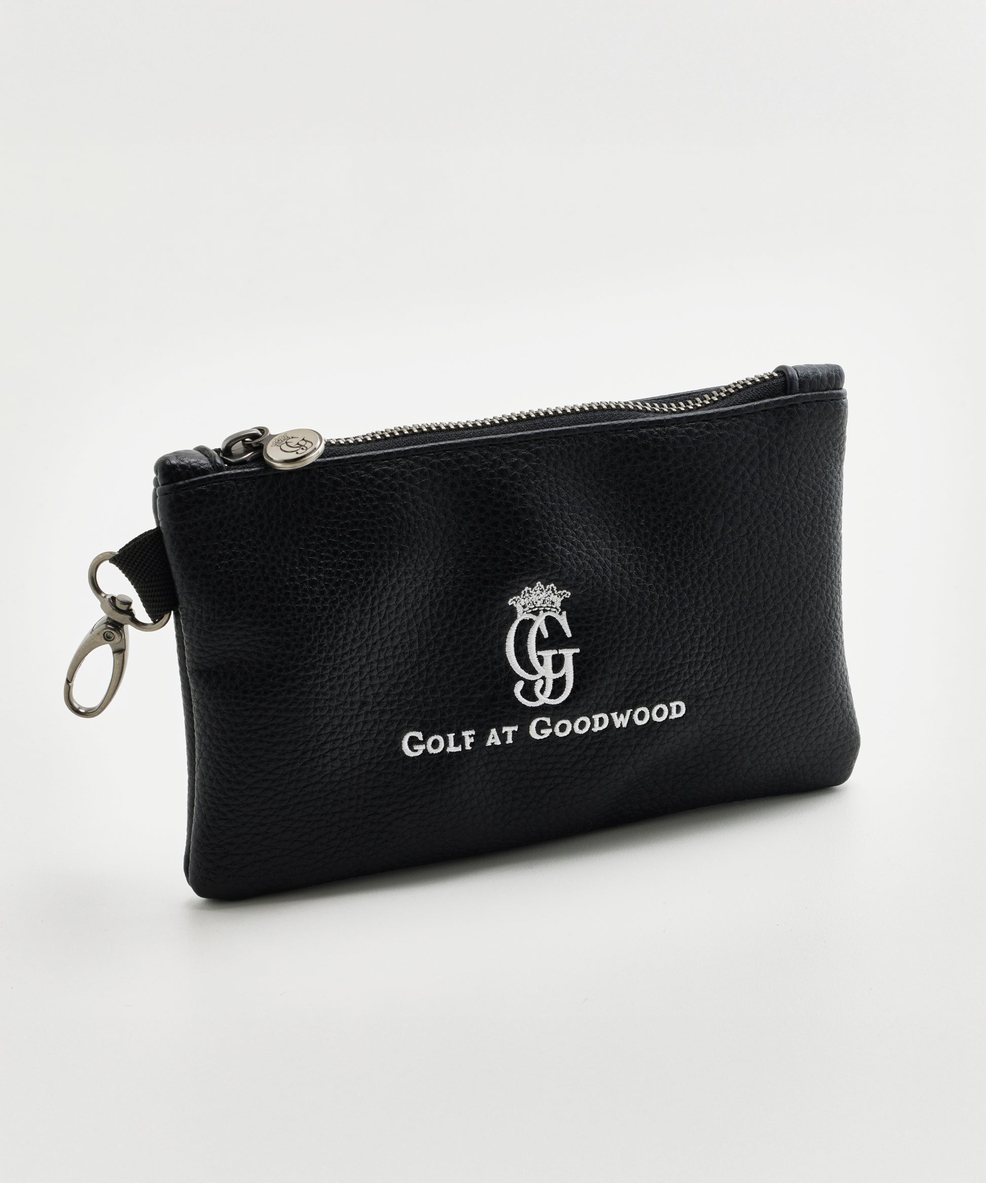 Golf At Goodwoods mini black PU leather tote bag, embroidered with our Golf At Goodwood logo and GG pull tag