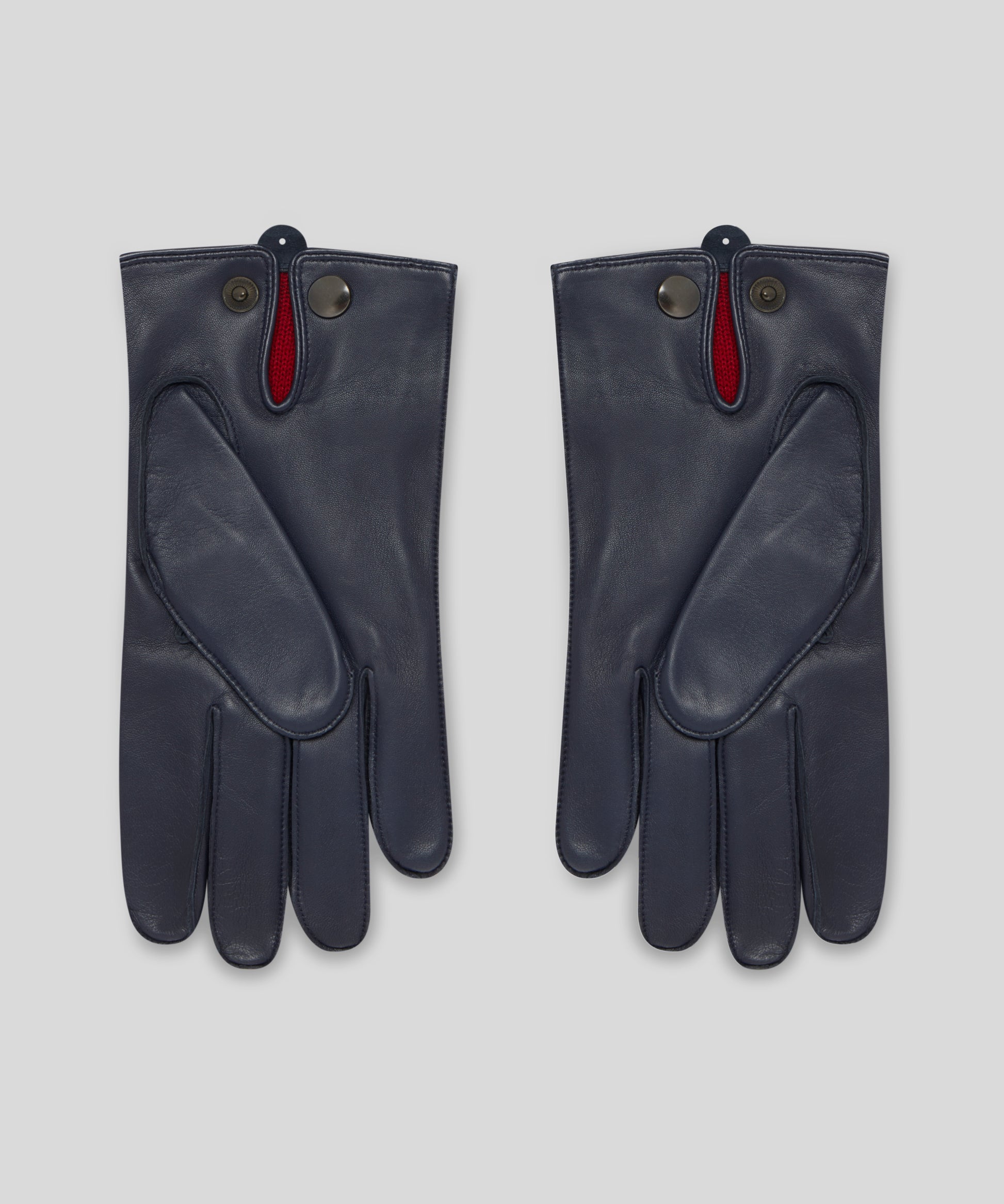 Add a little drama to your winter look thanks to our leather gloves with contrasting lining. Made from the finest cashmere for luxurious warmth and superior softness, the lining is a vibrant shade of red – certain to catch the eye. It provides the perfect contrast to the sleek hairsheep leather offered in three sophisticated shades – black, navy and English tan. The leather gloves are completed with handsewn decorative stitching and a stud fastener. An unconventional design for unconventional dressers.