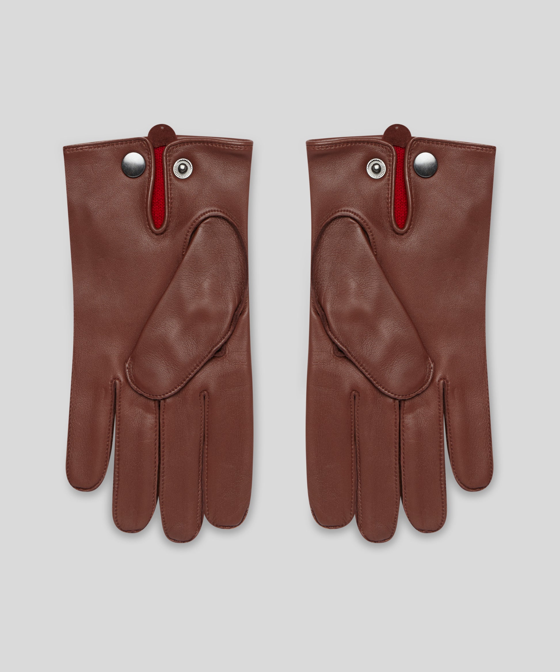 Goodwood Three-Point Red Cashmere-Lined Leather Mens Gloves