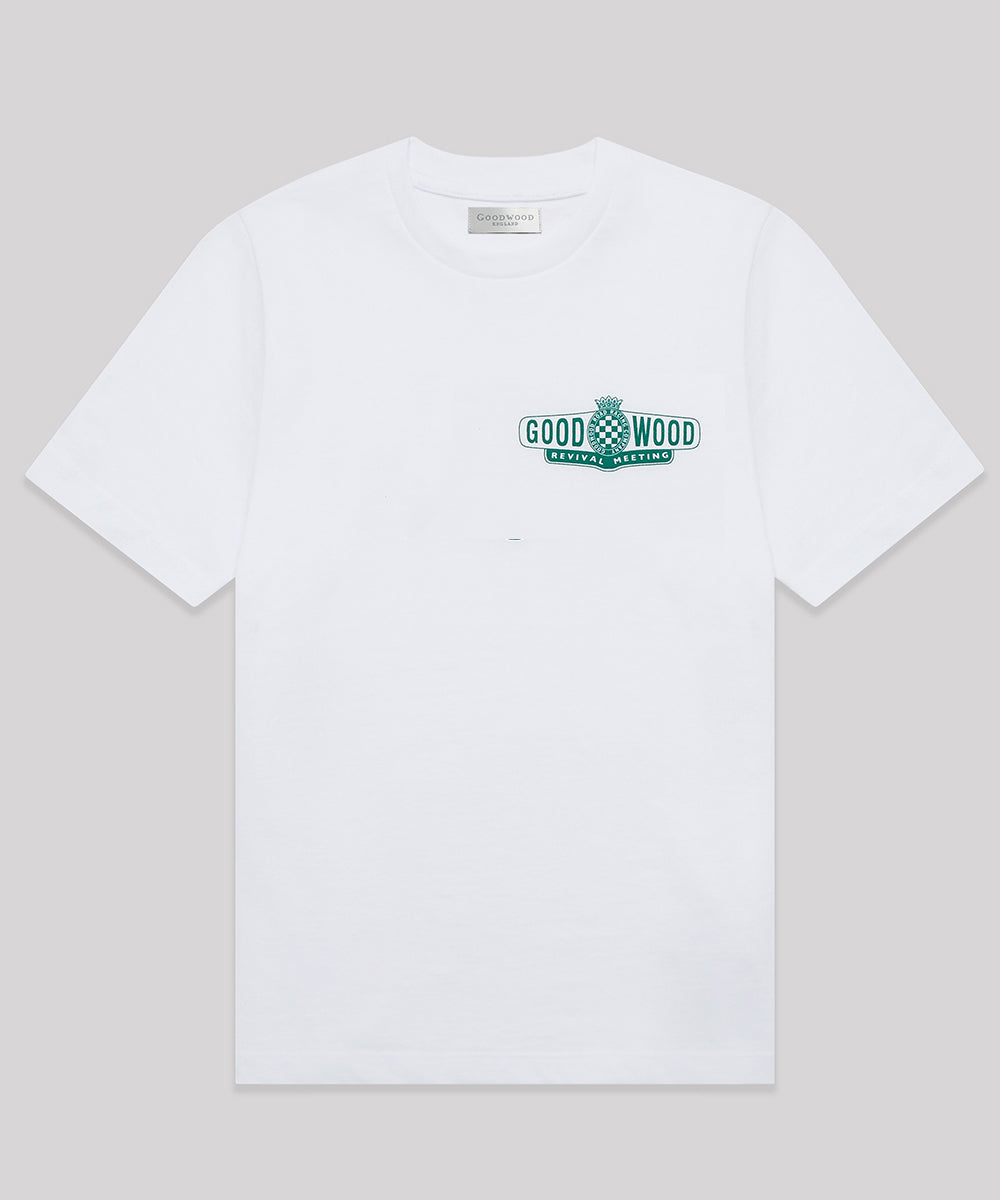 A great wardrobe needs great wearable, everyday foundations and this classic T-shirt, cut from heavyweight white cotton in a relaxed fit, and printed in the UK with the Goodwood Revival logo in contrasting green, is just that. Pairs perfectly with your Goodwood overalls.