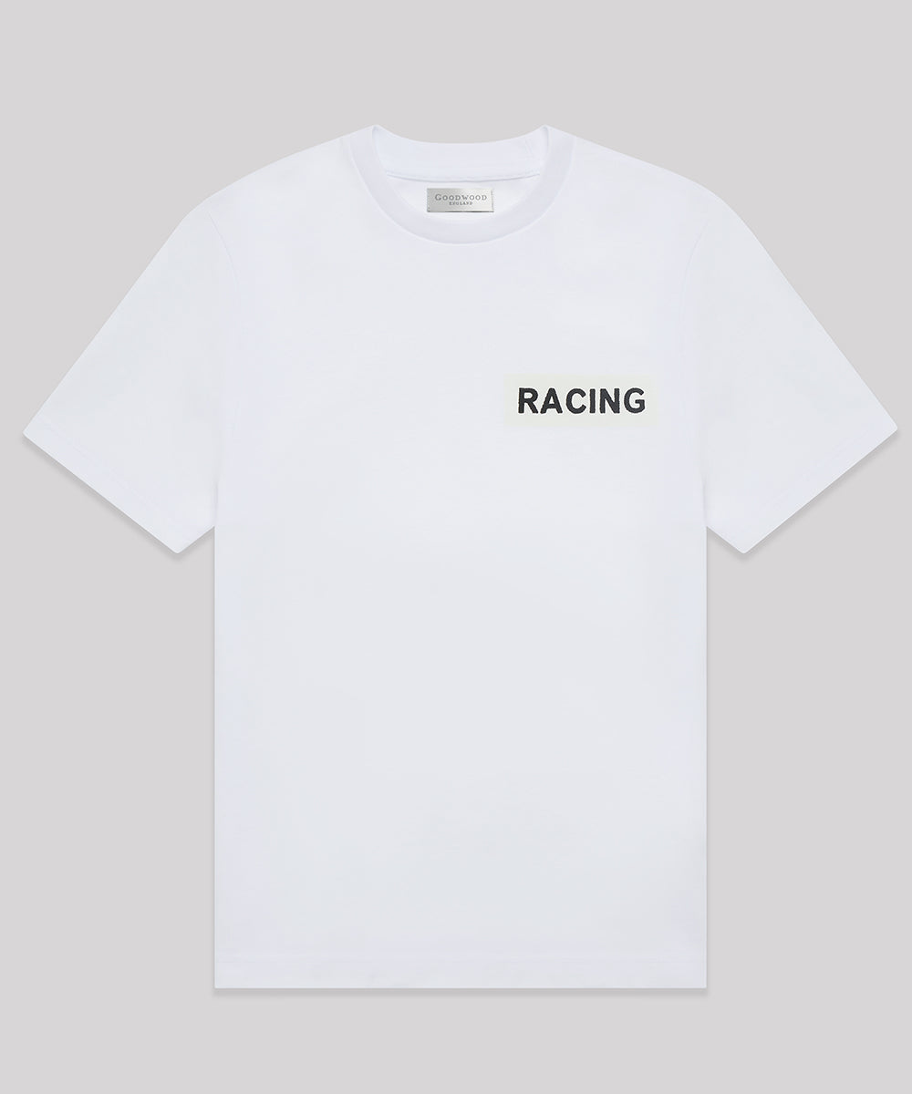 A great wardrobe needs great wearable, everyday foundations and this classic T-shirt, cut from heavyweight white cotton in a relaxed fit, and printed in the UK with the word 'Racing' in contrasting black, is just that. Pairs perfectly with your Goodwood overalls.