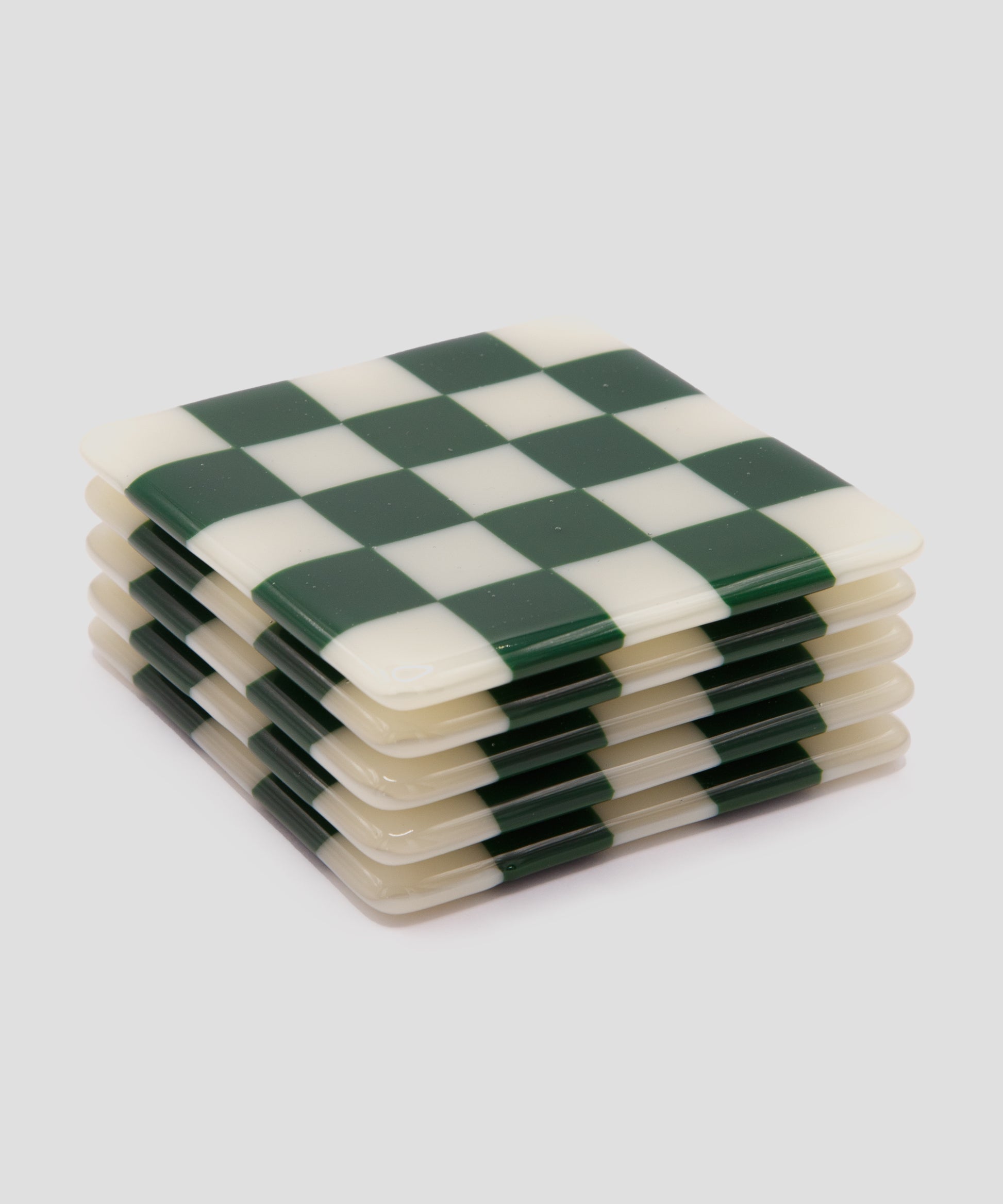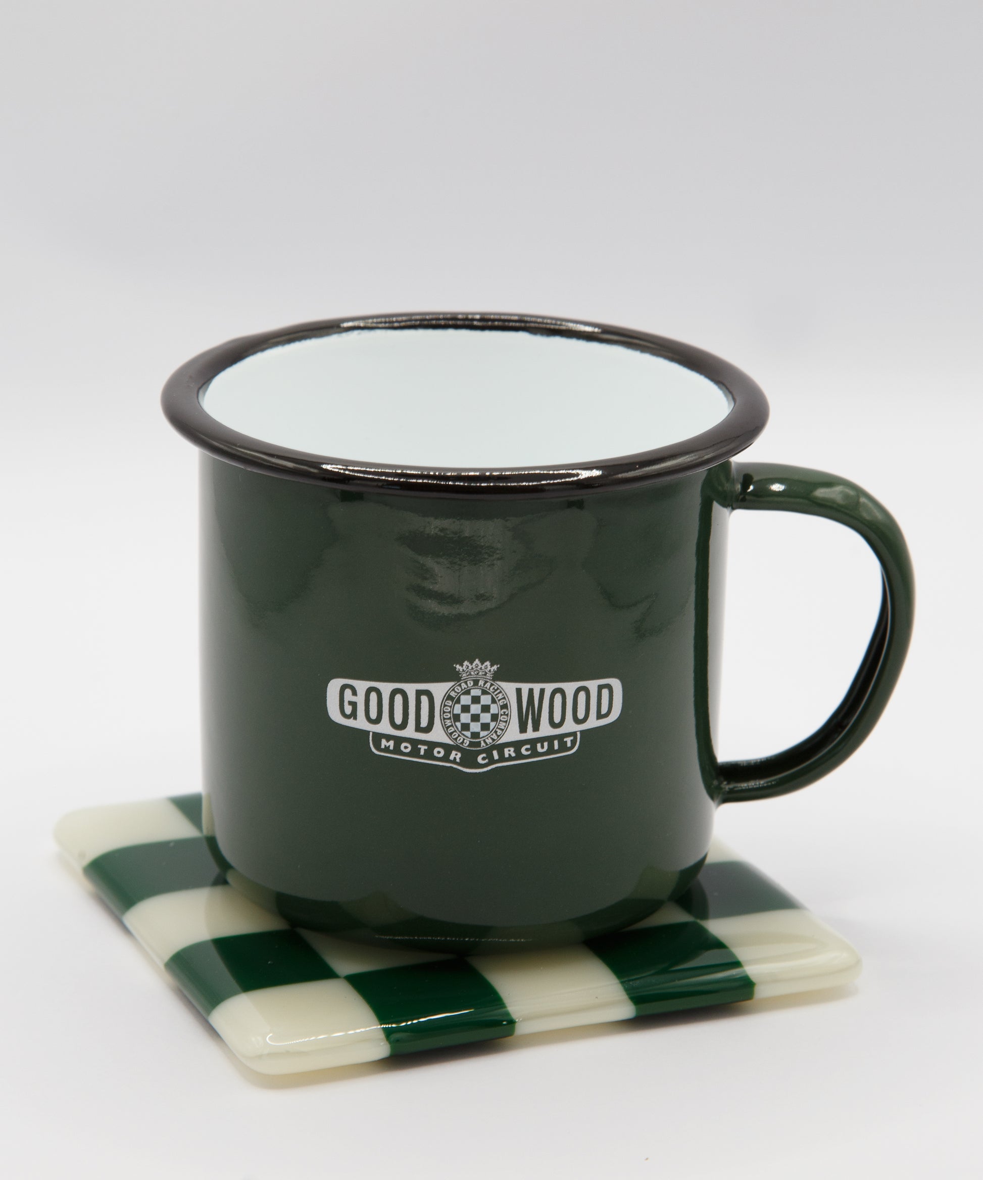 Goodwood Green & Cream Chequerboard Glass Coaster