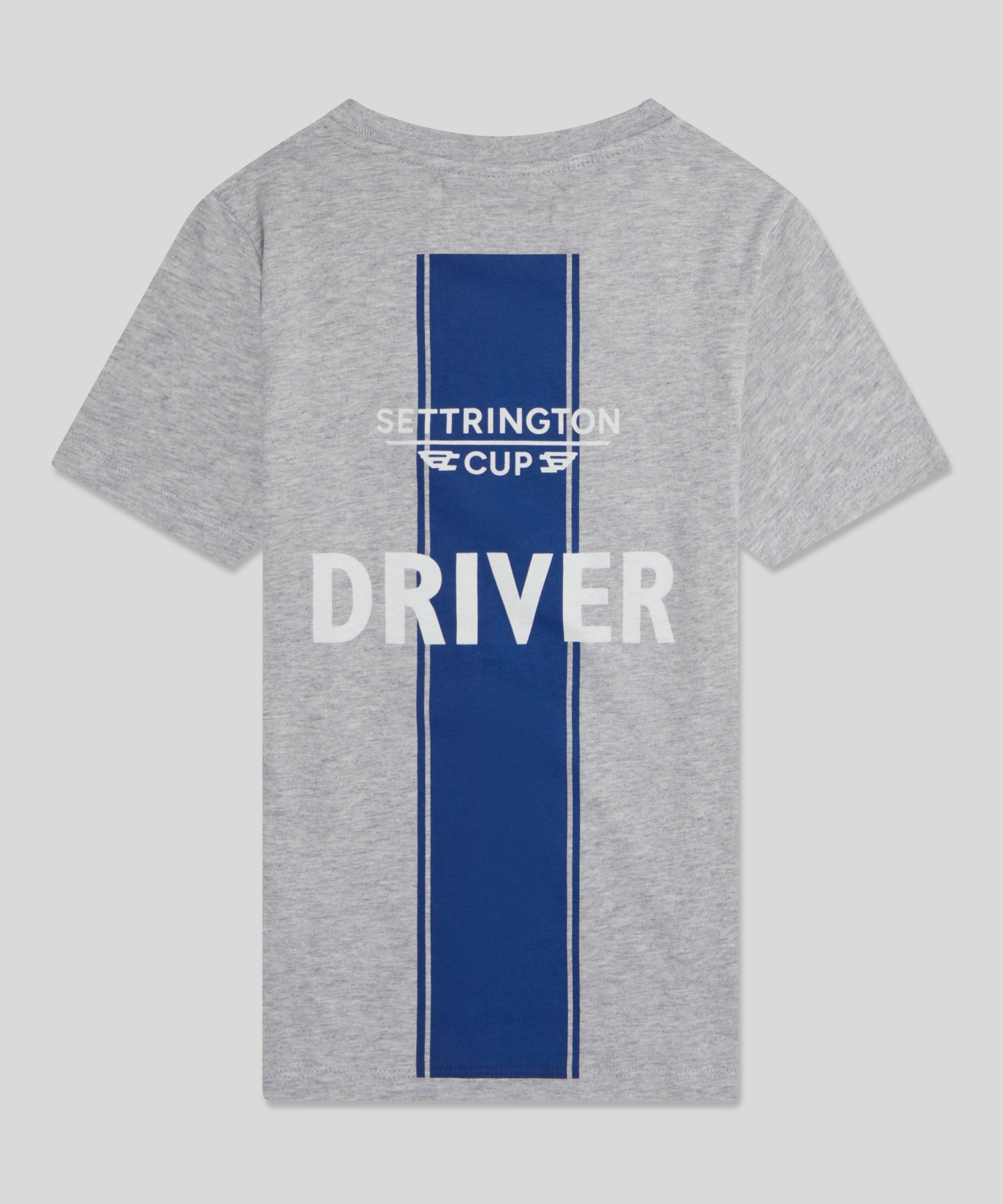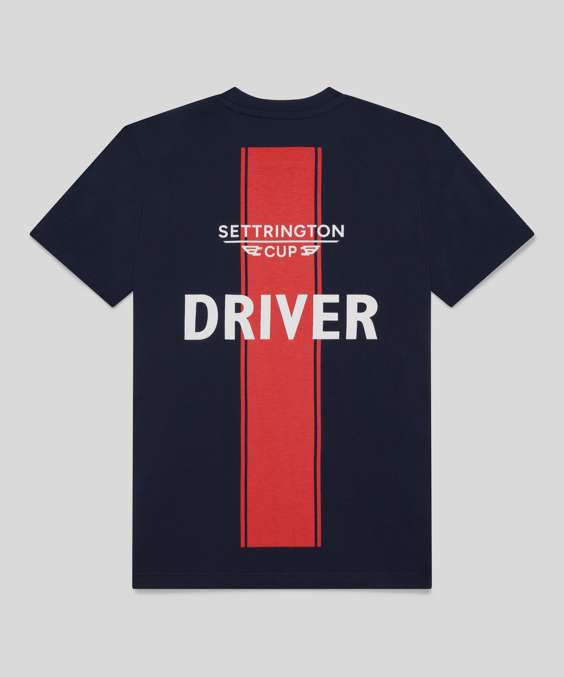 A great wardrobe needs great wearable, everyday foundations and this classic T-shirt, cut from heavyweight cotton in a relaxed fit, and printed in the UK with an instantly recognizable Austin J40 as seen raced by children in the Settrington Cup at The Revival, is just that. On the back shows the Settrington Cup logo with the great accolade 'Driver'.