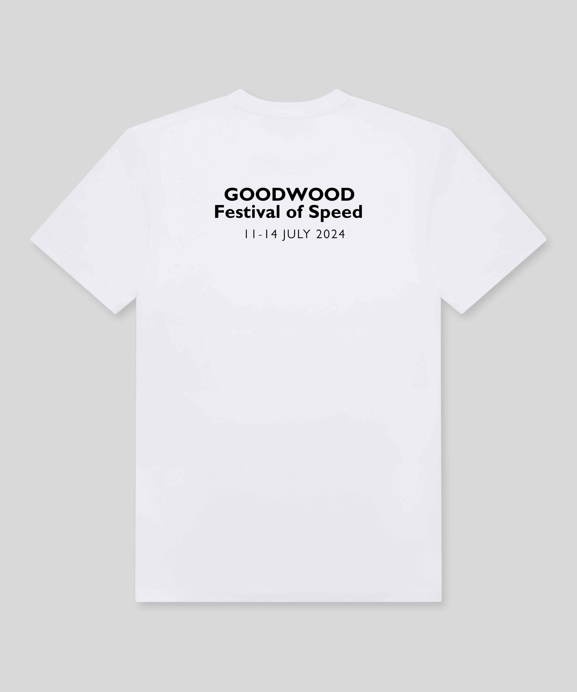 Featuring Jackie Oliver driving his Can-Am championship winning Shadow car, this celebration poster t-shirt is a must have to celebrate FOS 2024.