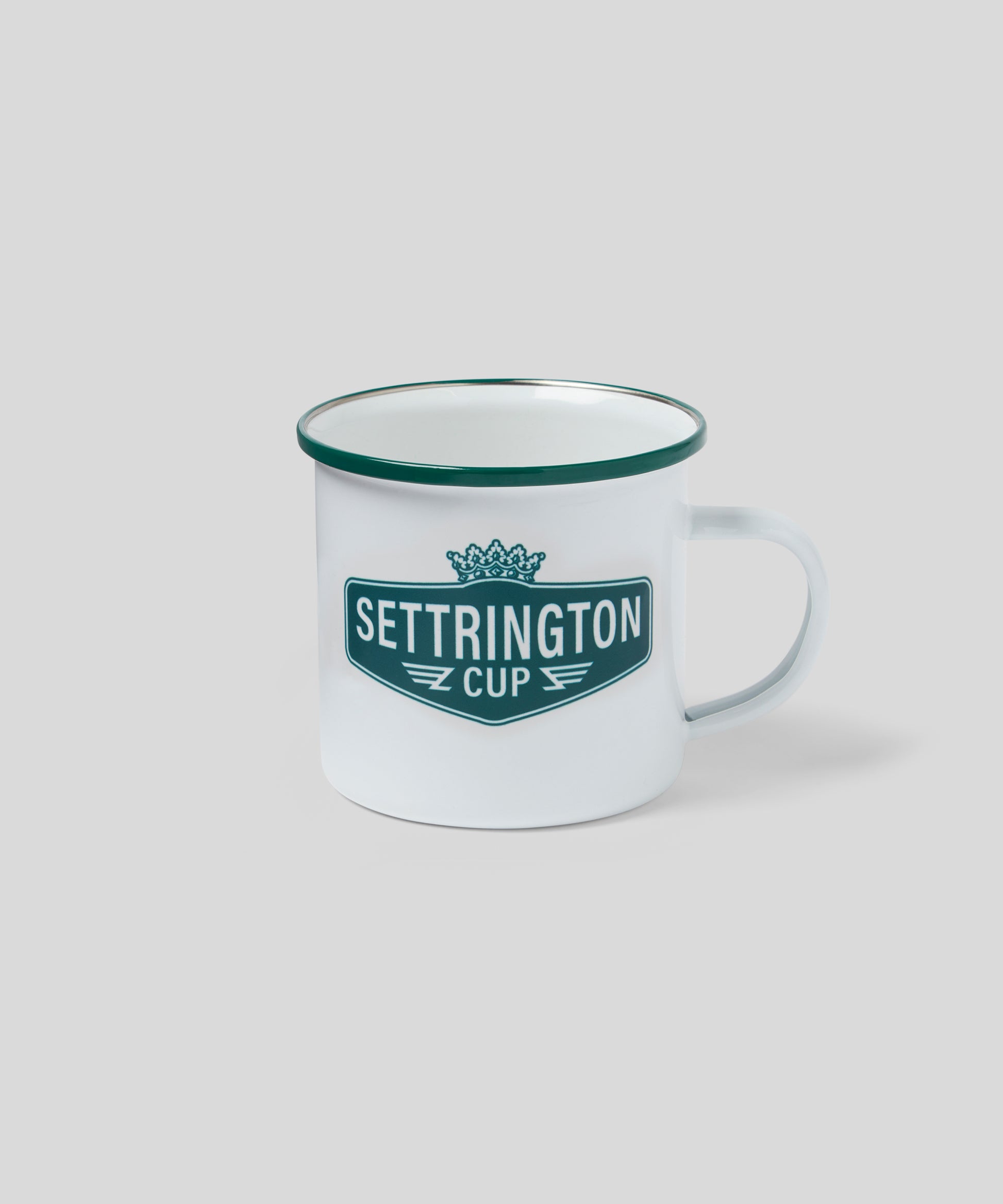 Well suited to hot or cold drinks, this classic white and green tin mug features the Goodwood Settrington Cup logo and is easy to clean, impact resistant and lightweight, ideal for all your outdoor adventures. Nigh on unbreakable, this retro tin mug is a handy essential when working on the car or out for a picnic with friends and family. Features a red Austin J40 on the opposite side of the cup.