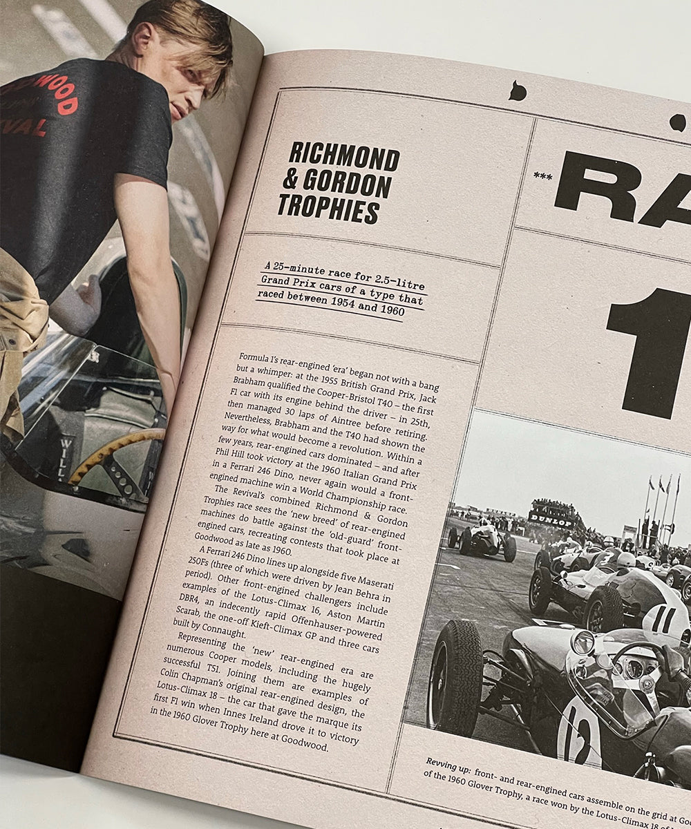An excellent jam packed programme to celebrate 25 years of racing at Goodwood. Really nice lay-out, with comprehensive descriptions of the different races and lots of wonderful photographs bringing to life Goodwood from days gone by. Obviously a great deal of thought put into design and finished with good quality paper and a fine print run. Congratulations, but then Goodwood always does it with style!!