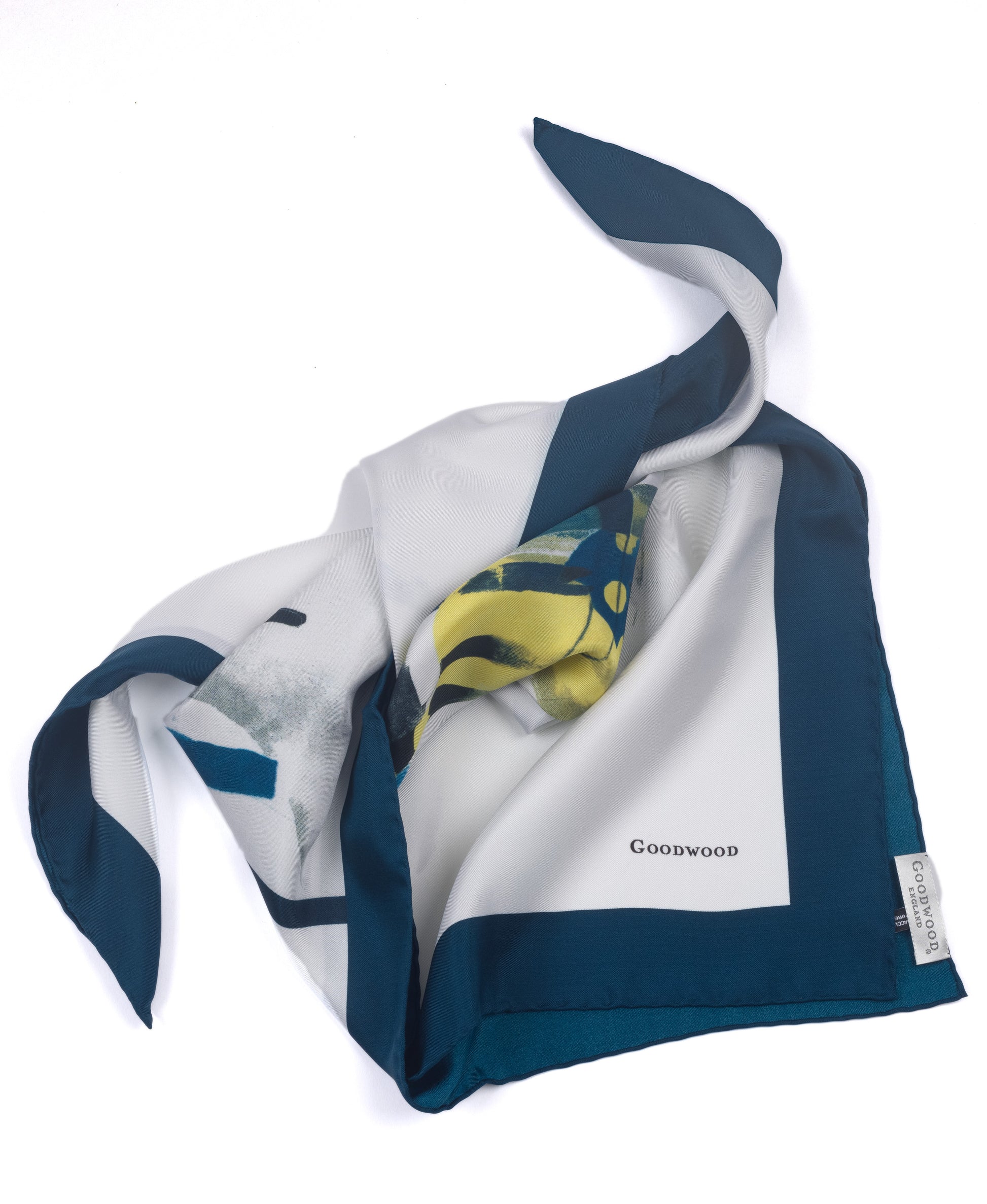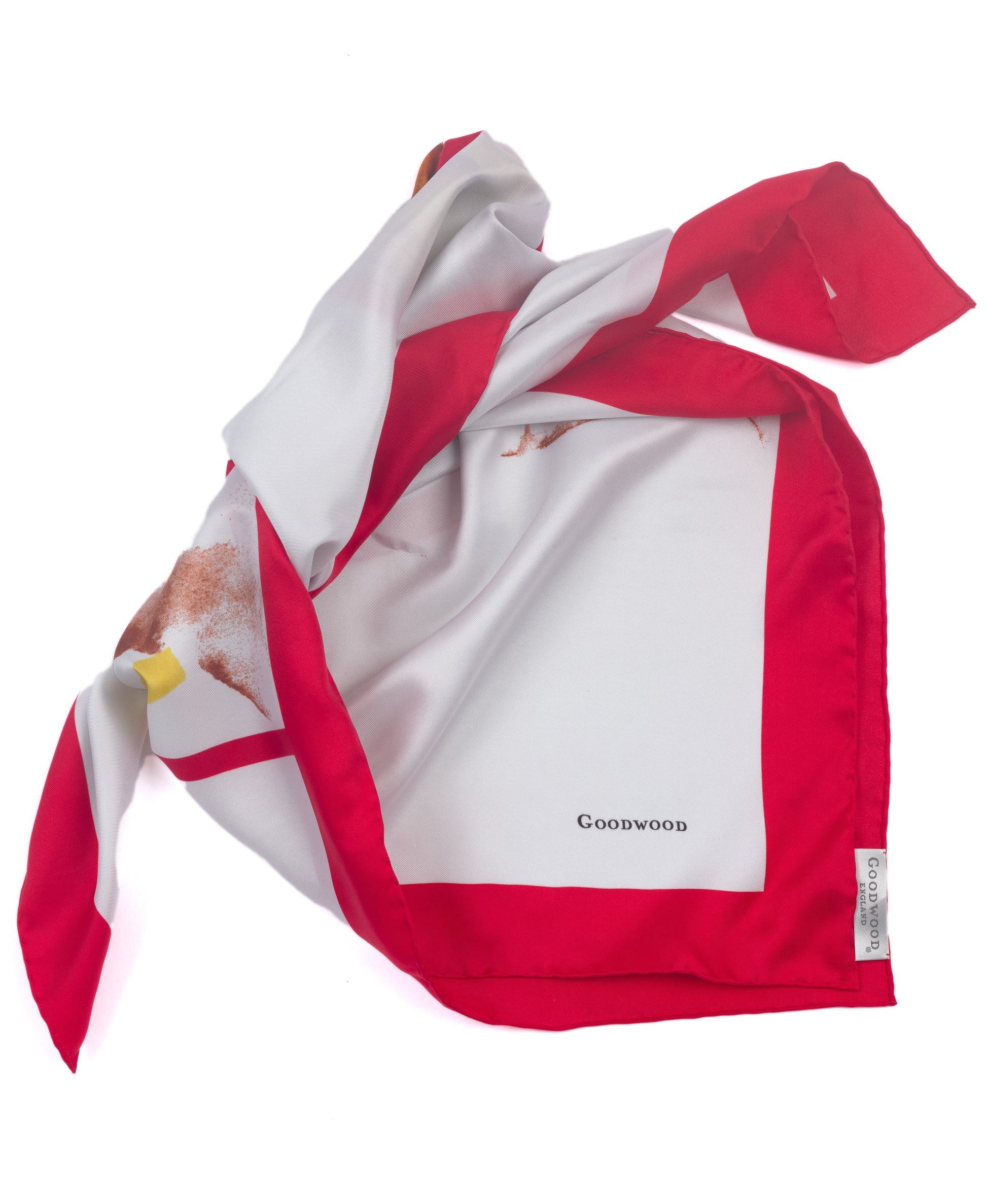 A beautiful depiction of horse racing on a 100% silk scarf. The perfect addition to any outfit.